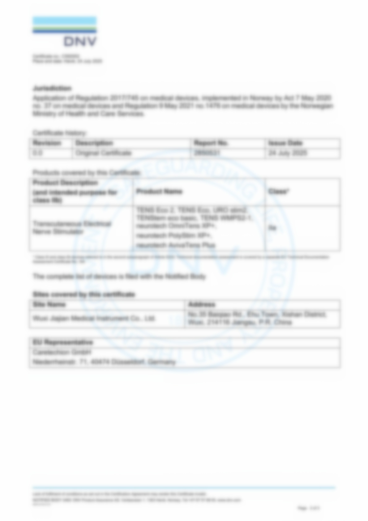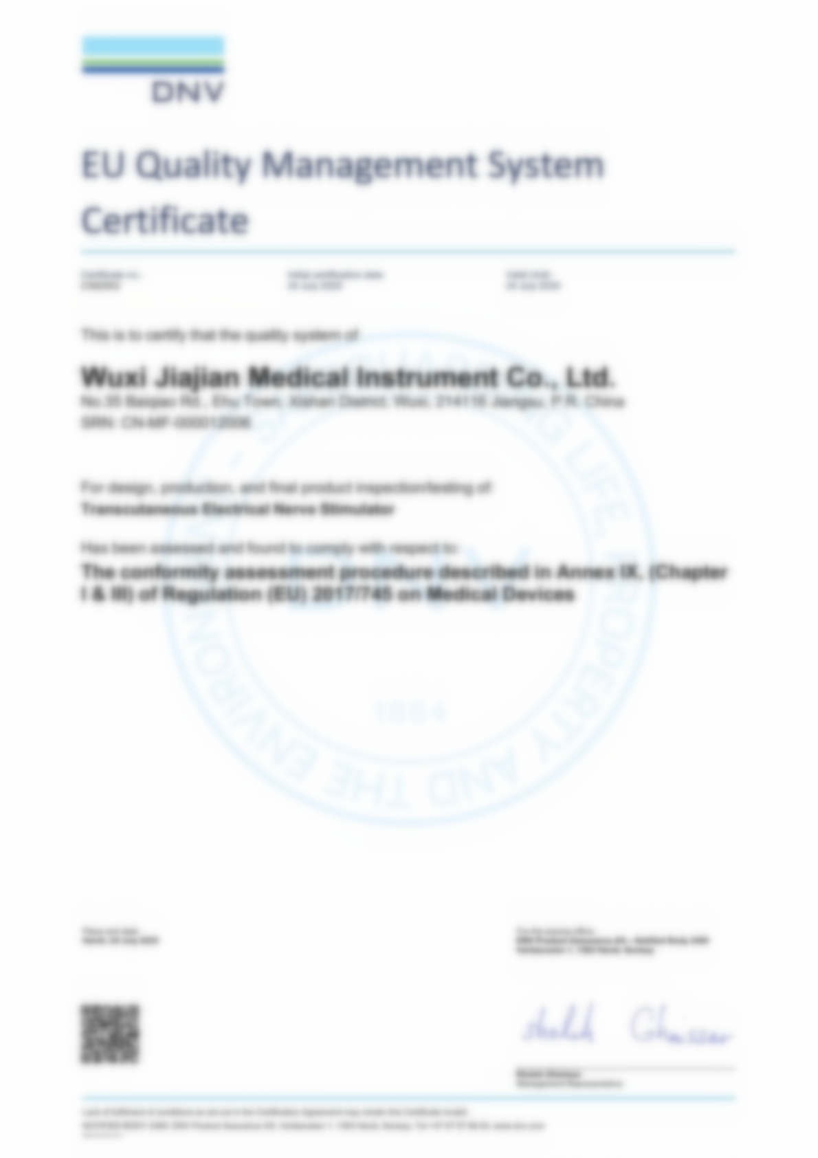 2025年7月24日,佳健医疗的低频电子脉冲治疗仪顺利通过欧盟医疗器械法规(MDR)认证审核,成功获得MDR证书。这一里程碑式成果不仅标志着公司产品在安全性、有效性及合规性方面达到欧盟标准,更加彰显公司在全球医疗器械市场的竞争力实现跨越式提升,为拓展国际市场注入强劲动能。
